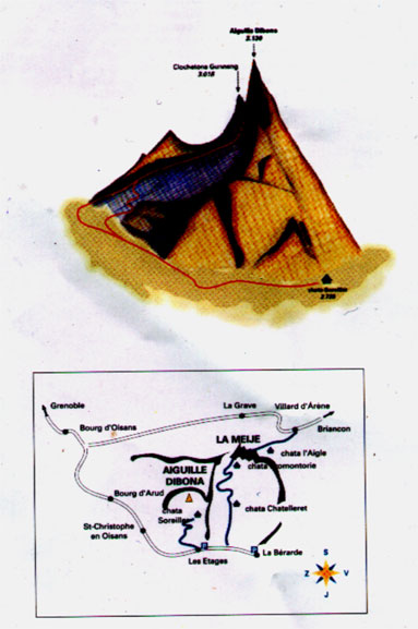 Přístup: z osady Les Etages, ta je asi 50 km od Grenoblu, přespání v kempu v osadě Le Bérarde. Upozorňuji ovšem na nebezpečí závalů z přívalovýych dešťů. My jsme museli 2 dny čekat na vysvobození nežli bary odklidily navršenou zeminu a kamení ze jediné přístupové silnice do údolí.